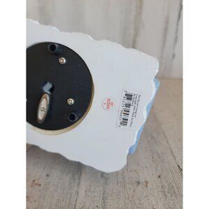 Product has mild scratches and marks, nose broken off of driving snowman but otherwise in good condition, winds up and plays music, no box