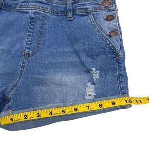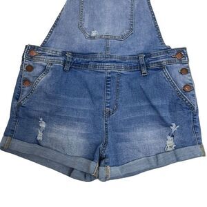 Encore Juniors Distressed Stretch Cuffed Denim Shortalls Mid Wash Blue Size 11
