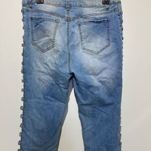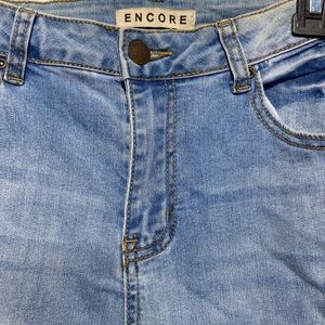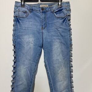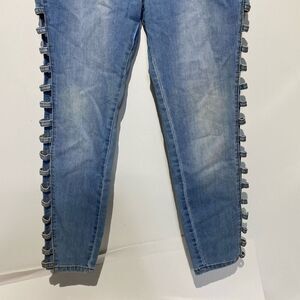 Encore Women's Blue Side Cut Out Faded Cotton Blend Skinny Jeans Size 15