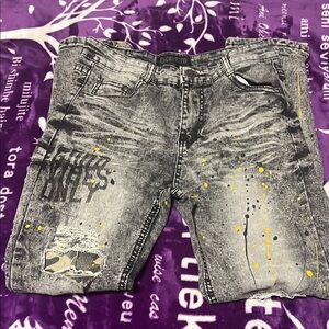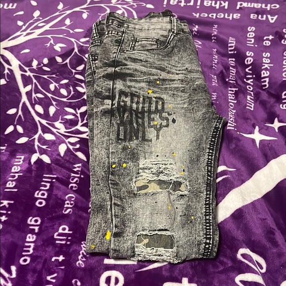 *Good Vibes Only written on the front of jeans*