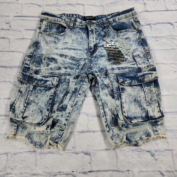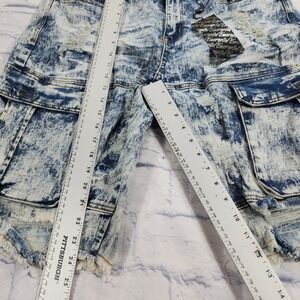 Encrypted Denim Cargo Shorts MENS SIZE 38 Blue Acid Wash Stretch