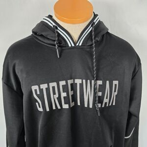 Encrypted Hoodie Men's Large Black White Stripes Streetwear Logo Drawstring