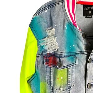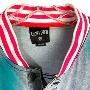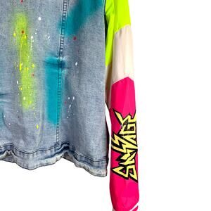 Encrypted Jean Jacket Womens M Blue Denim Graffiti Streetwear Sleeves 1980s