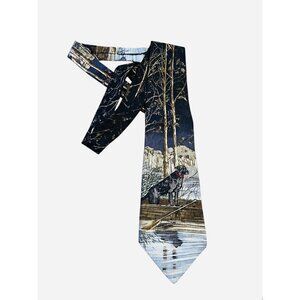 Endangered Species Silk Tie Black Lab In Wooden Canoe Hunting Outdoor VTG