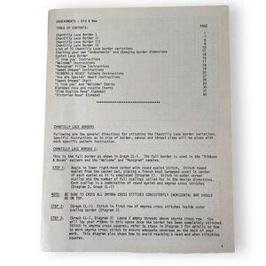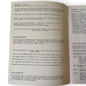 This needlework booklet is full of beautiful cottage core patterns that contain cross stitches and specialty stitches. The booklet is in good condition with minimum shelf wear and no marks on the chart. Designed by Carol Costello for Fancy Work & Fantasies.