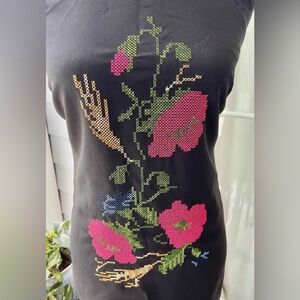 Endless Rose black sleeveless dress with floral embroidery on front and adjustable spaghetti straps. Has long black fringe at skirt hem for that flirty look!! Hidden zipper closure in back and fully lined with separate tank with the attached fringe. EUC