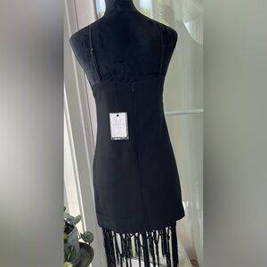 Ending Rose dress size small form fitting spaghetti strap with black fringe NWT