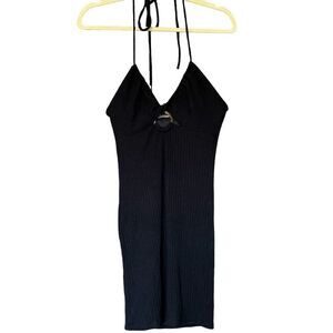 Endless Blu. Black knit halter dress bodycon DJD5228 size Small NWT new with tag