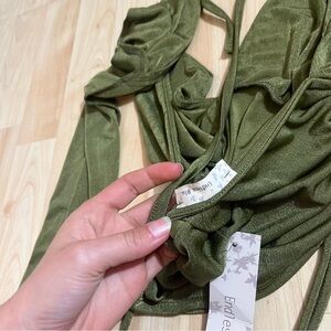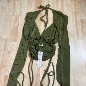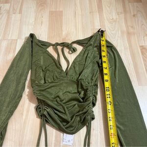 Endless Blu New With Tags Green Ruched Vneck Cropped Long Sleeve Blouse Size Sm