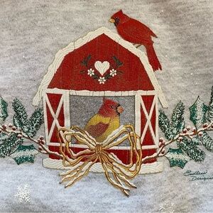 Endless Designs Vintage Cardinals Birds in House Winter Sweatshirt Large