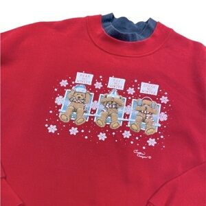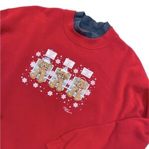Endless Designs vintage red Christmas teddy bear sweater size large