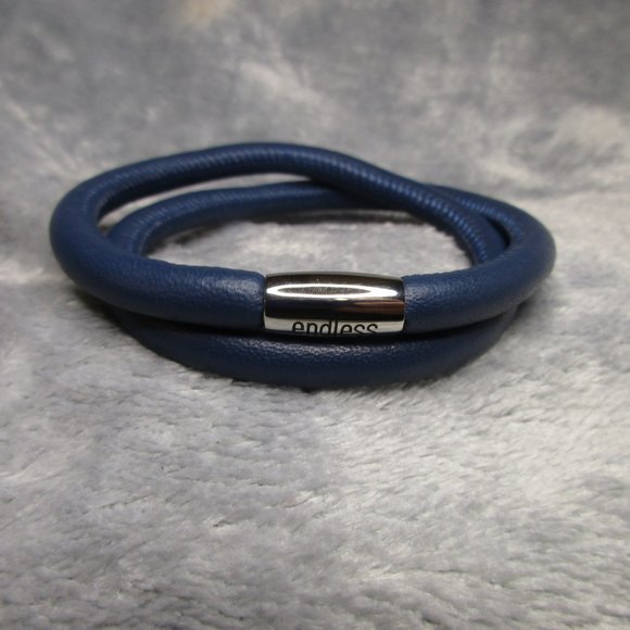 Endless Double Blue Leather Silver Clasp Bracelet By JLO 8.5 inch NEW A56