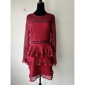 Endless Rose Begin Again Tiered Crochet Dress Cranberry Size Medium