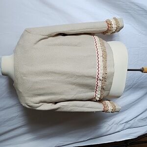 Chic beige jacket by Endless Rose. Features textured fabric and fringe details. Open front design. Perfect for layering. 21 inches across 22.5 inches shoulder to hem.