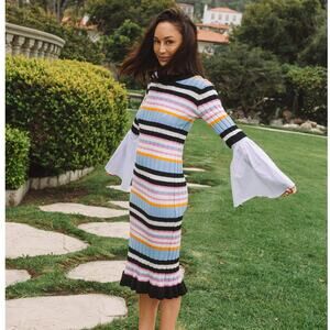 Endless Rose Bell Sleeve Striped Midi Sweater Dress Small