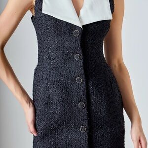 Elegant black textured sleeveless dress featuring a striking white collar. Perfect for formal occasions. Available in xs,s or medium. Price is for one dresses. I will add pictures