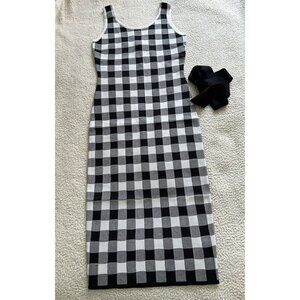 Endless Rose Black/White Gingham Print Sleeveless Body-con Midi Dress Size S