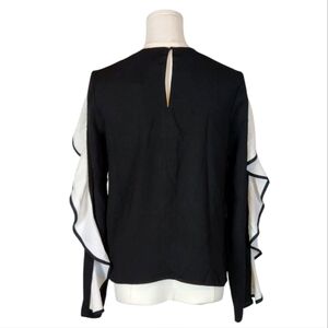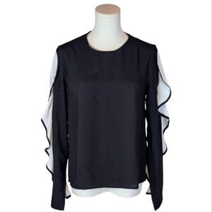 Endless Rose Cascading Ruffle Sleeve Blouse Black White Size Small