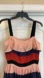 Chic colorblock design with bold stripes. Features pink, red, and blue hues. Ideal for versatile styling.