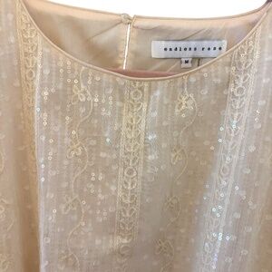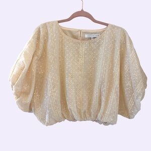 Endless Rose Cream Sequin Bubble Hem Puff Sleeve Blouse size M