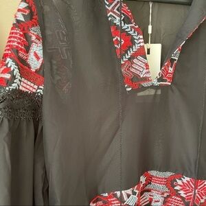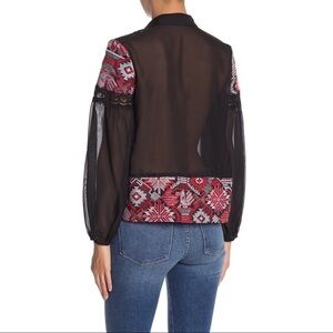 A semi-sheer embroidered chiffon blouse adds boho-chic style to your outfits.