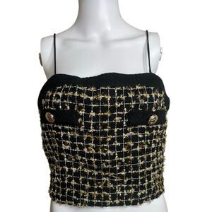 Endless Rose Elegant Black and Gold Tweed Crop top Size Small