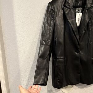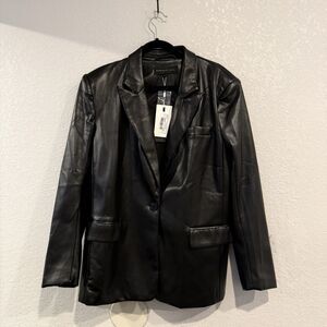 Endless Rose Faux Leather Blazer Black Oversized Jacket Lined Size Large New