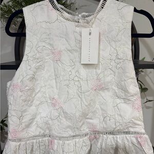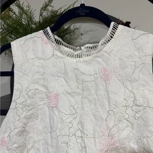 Elegant tank top with floral embroidery. Features cream base with pink accents. Perfect for casual or dressy occasions.