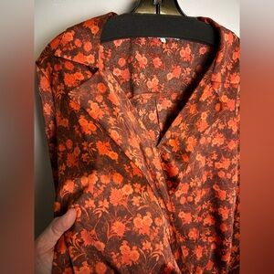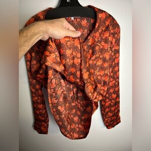 Endless Rose Floral Orange Women's Top Satin long Sleeve Fall floral old Money