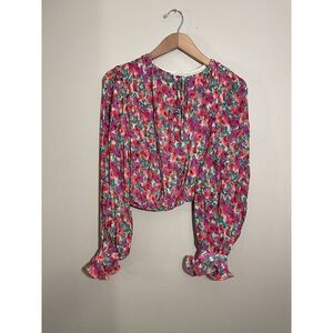 Endless Rose Floral Print Bubble Crop Top Women’s XS Balloon Sleeve Pink