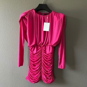 ✨ Endless Rose Hot Pink Ruched Long Sleeve Mini Dress- Size S ✨
