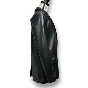 Accents: Notched Lapels, Oversized Fit, One-Button Closure, PU Faux Leather, Back Vent, Button Cuffs, Lined Interior
