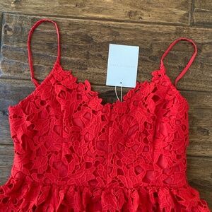 Endless Rose Lace Tiered Red Mini Dress Women's Small Wedding Guest Event