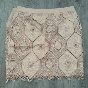 Chic lace pencil skirt in a soft beige hue. Features intricate floral patterns. Perfect for elevating your style.