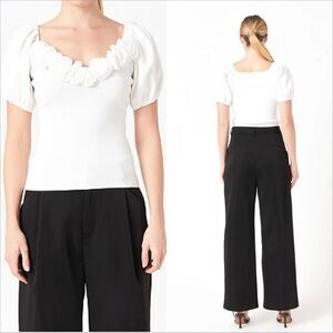 Endless Rose Mixed 3D Flower Knit Top Size Medium NEW White Fitted Scoop Neck