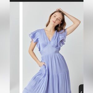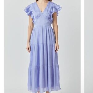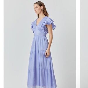 This Open-Back Maxi-Dress has an elegant v-neck and playful ruffled sleeves. Crafted from luxurious sheen crinkle fabric it's designed to make a lasting impression. The maxi length is perfect for any occasion from an outdoor lunch to a romantic evening. An open back adds a bit of drama. Look your best with this gorgeous dress and show off your unique sense of style!