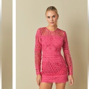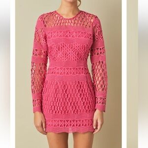 Endless Rose Pink Lace Crochet Bodycon Mini Dress