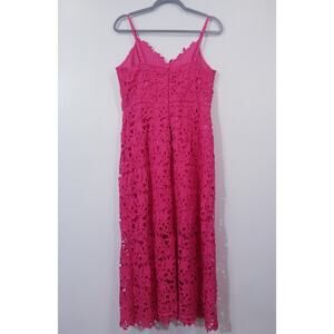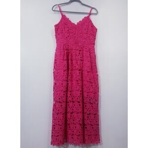 This elegant pink lace midi dress is perfect for any special occasion. The delicate lace detailing and flattering midi/maxi length create a timeless and sophisticated look.
