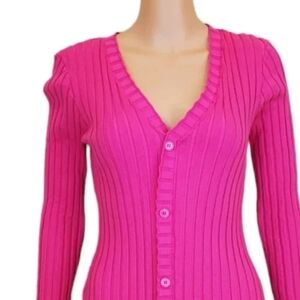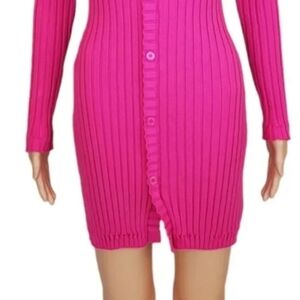 Stylish ribbed dress in vibrant pink. Perfect for a night out.