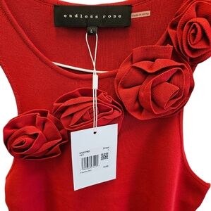 Endless Rose Red Rose Knit Ribbed Mini Dress NEW