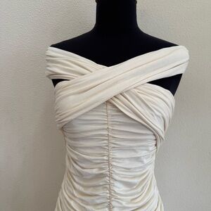 NWT Endless Rose Ruched Bodycon Midi Dress In Cream Small