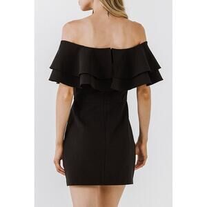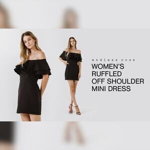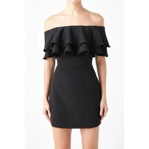 Endless Rose Ruffle Off-The-Shoulder Mini Dress - Black Medium NWT