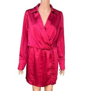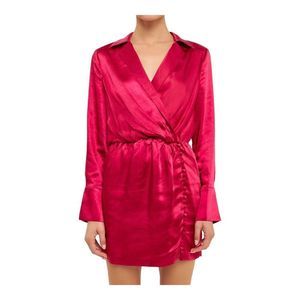 Endless Rose Satin Wrap Mini Dress in Fuchsia