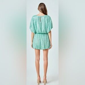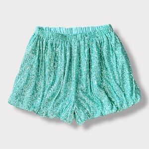 Endless Rose Sequin Blouson Bubble Hem Shorts in Green NWOT- Size Small