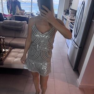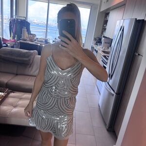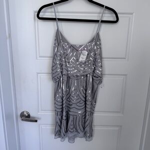 Endless Rose Sequin dress in Art deco design Silver and grey color - cinched waist