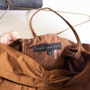 Endless Rose Shirred Blouson Romper in Camel Brown with Puffed Shorts Size S