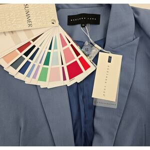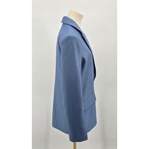 Classic and polished single-breasted blazer in a soft periwinkle blue — a beautiful match for the Summer seasonal palette (especially close to “Powder Blue” and “Cornflower” swatches). Features a single-button closure, structured shoulders, and front flap pockets. Fully lined for a smooth fit.