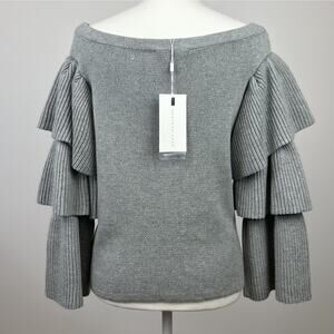 Endless Rose Sweater Romantic Ruffle Off Shoulder Tiered Sleeve Gray Small NWT