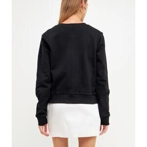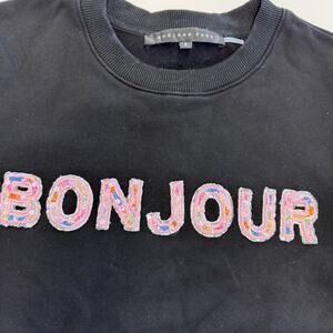 Endless Rose Sweatshirt Womens Small Black Bonjour Lettering Beads Pullover