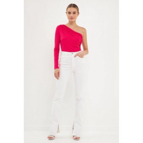 Endless Rose Sz. L New Fuchsia Shirred One Shoulder Bodysuit